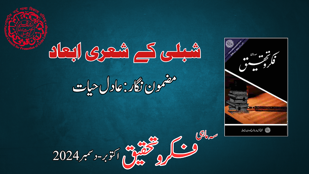 سرسید احمد خاں کے رفقا میں شبلی نعمانی نے سیرت، سوانح اور تاریخ نگاری کو ایک سمت دی اور اردو نثر کی مختلف اصناف میں اپنی خاص پہچان بنائی۔انھوں نے فارسی میں شاعری کی اور اردو شعر و ادب کے چراغ کو بھی جلائے رکھا۔ ان کی طبیعت بچپن ہی سے شعر و ادب کی طرف راغب تھی، بلکہ یہ کہنا زیادہ مناسب ہوگا کہ ان کا شعری ذوق فطری اور وجدانی تھا۔ شبلی کی ابتدائی شاعری روایتی ضرور تھی، لیکن علی گڑھ آنے کے بعد کالج کی فضا اور سرسید کے اثر سے ان میں تبدیلیاں آتی گئیں، جو کہ حیدرآباد اور لکھنؤ کے زمانۂ قیام کے دوران بھی جاری رہیں۔ چنانچہ شبلی کی شاعری میں بتدریج فنی اور فکری پختگی کا احساس ہوتا ہے۔علامہ شبلی نعمانی نے غزل، نظم، مثنوی، مرثیہ، قصیدہ، قطعہ اور مسدس جیسی متعدد اصنافِ شاعری اور ہیئتوں میں دادِ سخن دی ہے۔ ان کی مذہبی، اخلاقی، تاریخی اور سیاسی نظمیں اردو کے شعری سرمائے میں گراں قدر اضافے کا حکم رکھتی ہیں۔