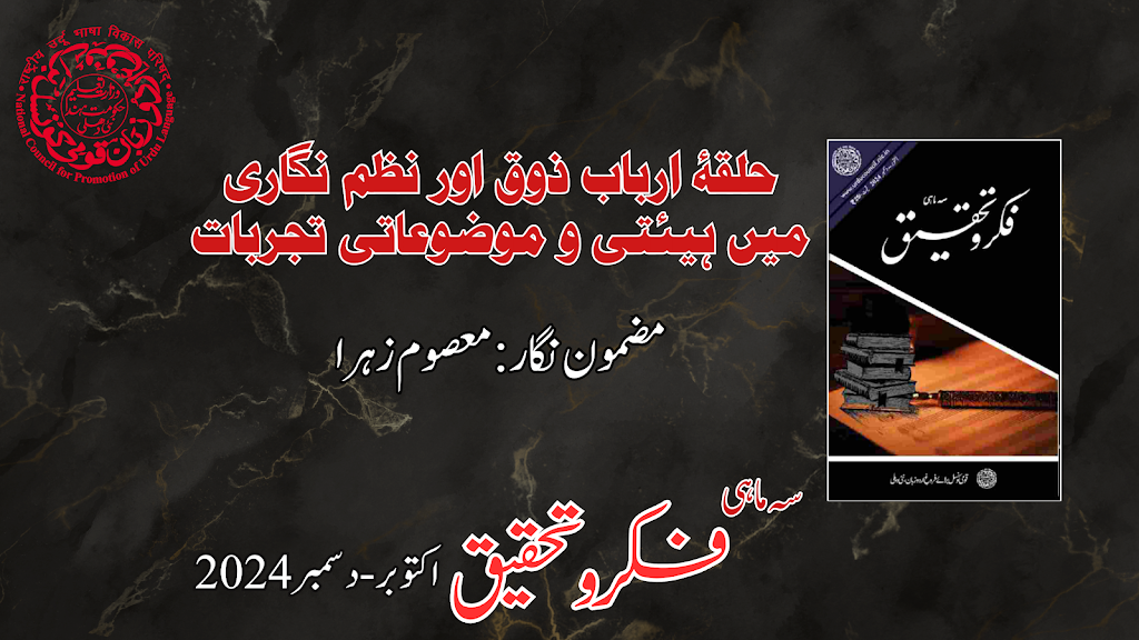 حلقۂ ارباب ذوق اور نظم نگاری میں ہیئتی و موضوعاتی تجربات، مضمون نگار: معصوم زہرا