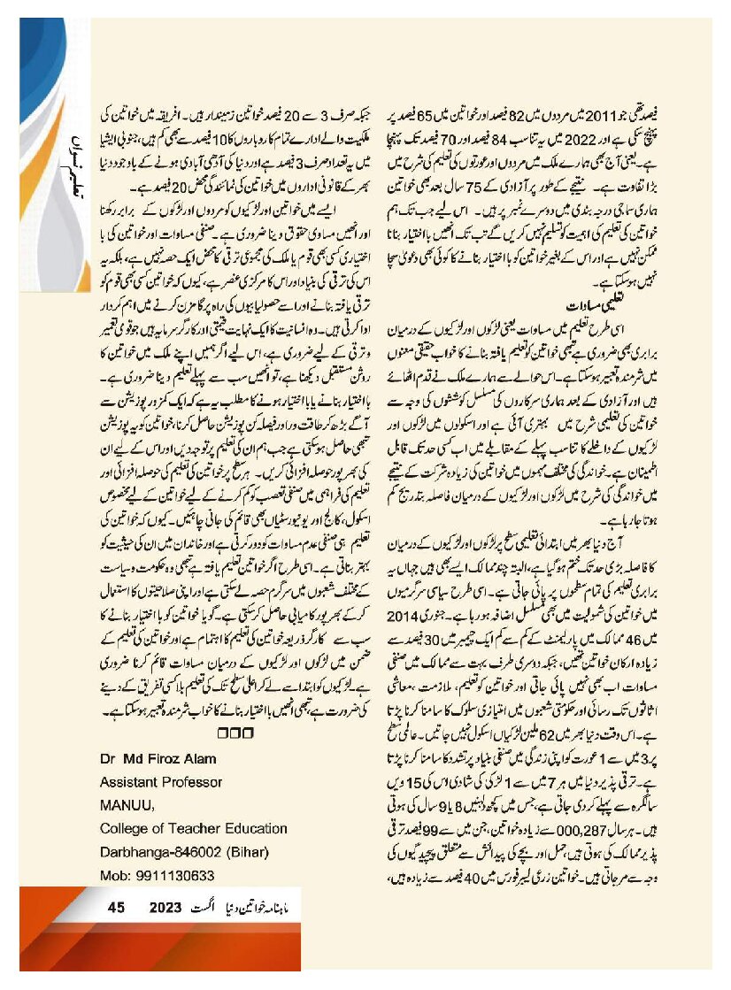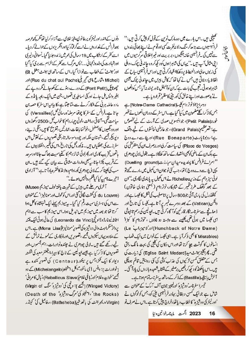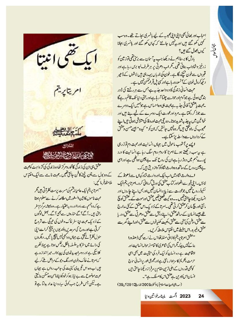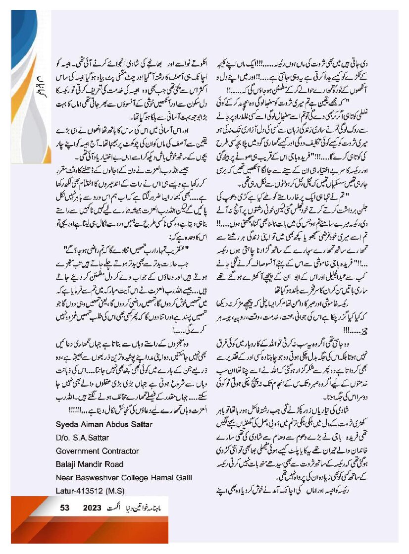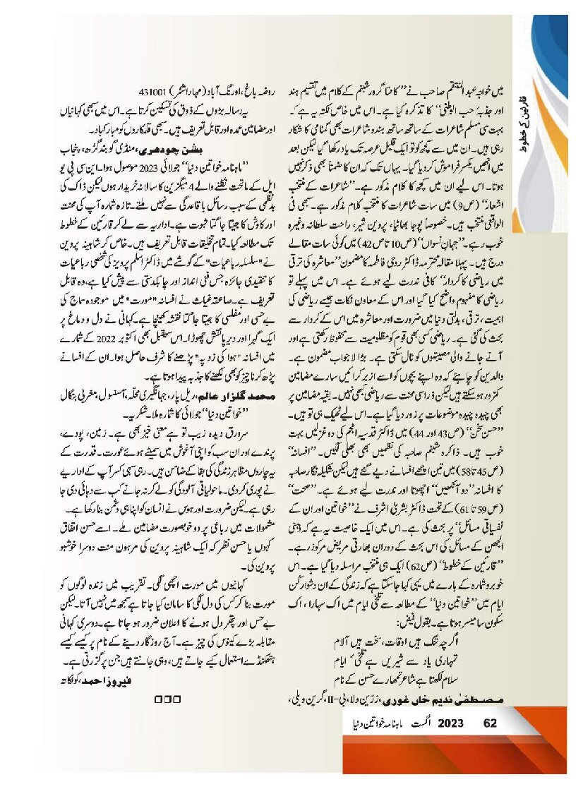 Mahnama Khawateen Duniya August 2023