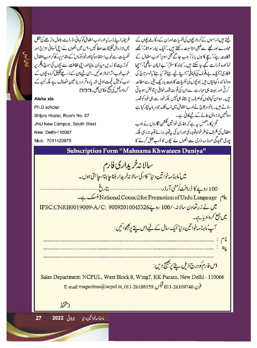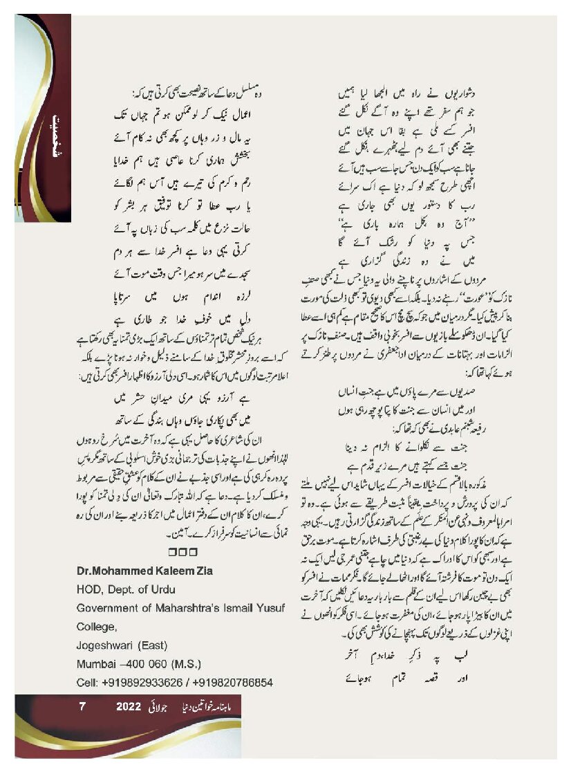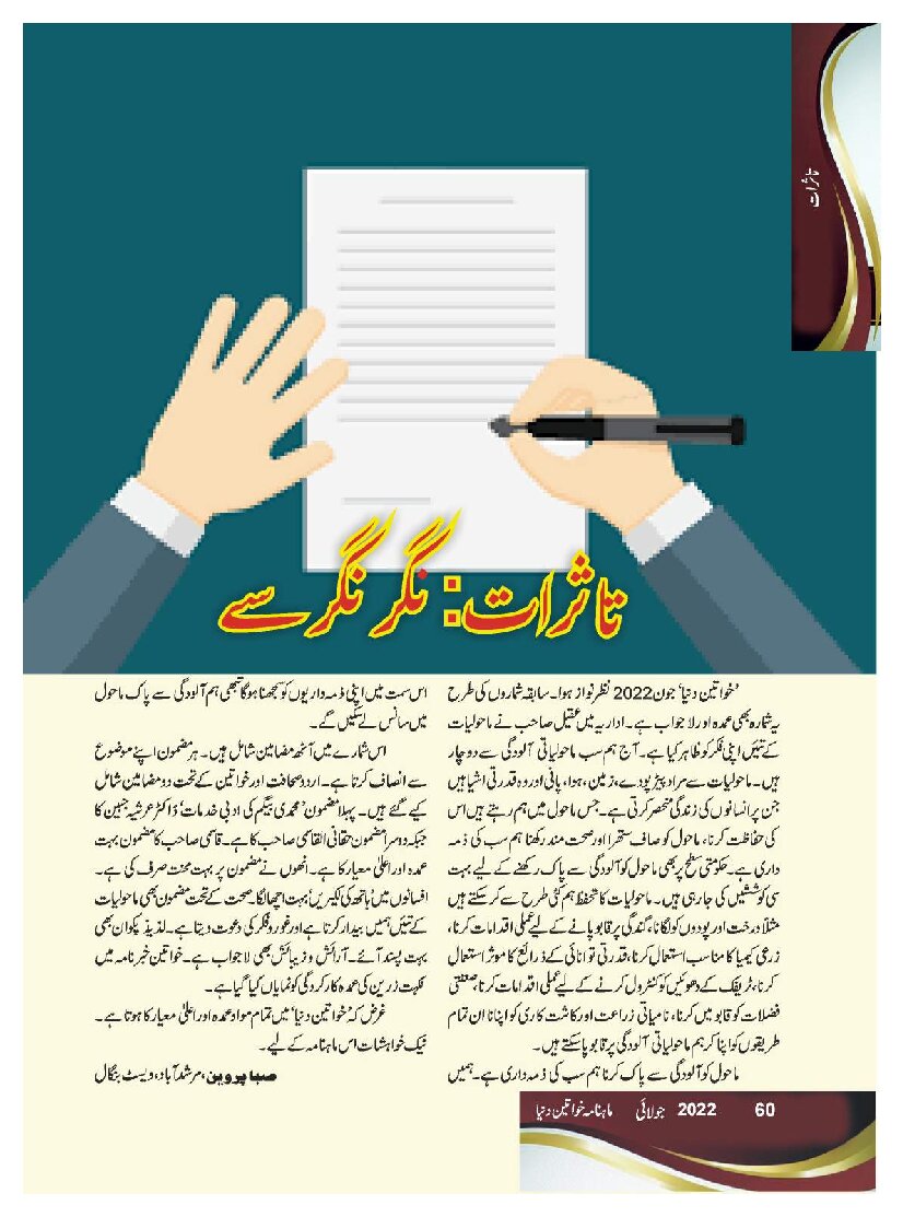 Mahnama Khawateen Duniya July 2022