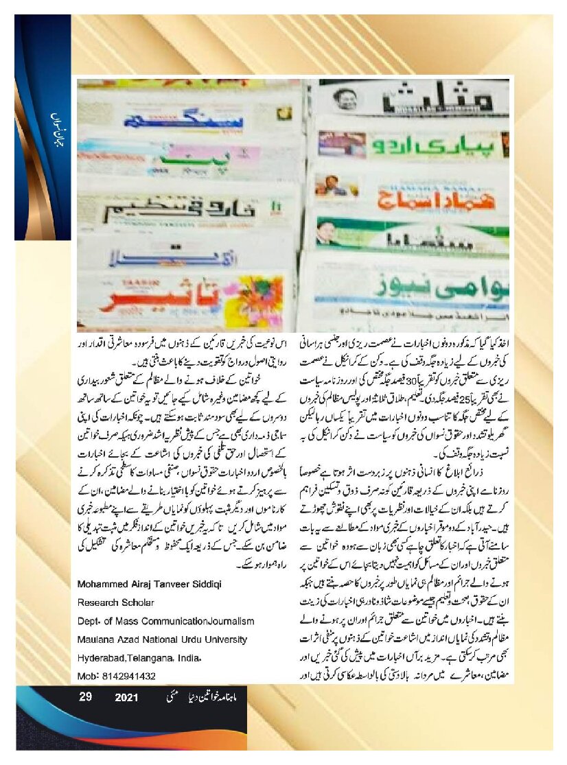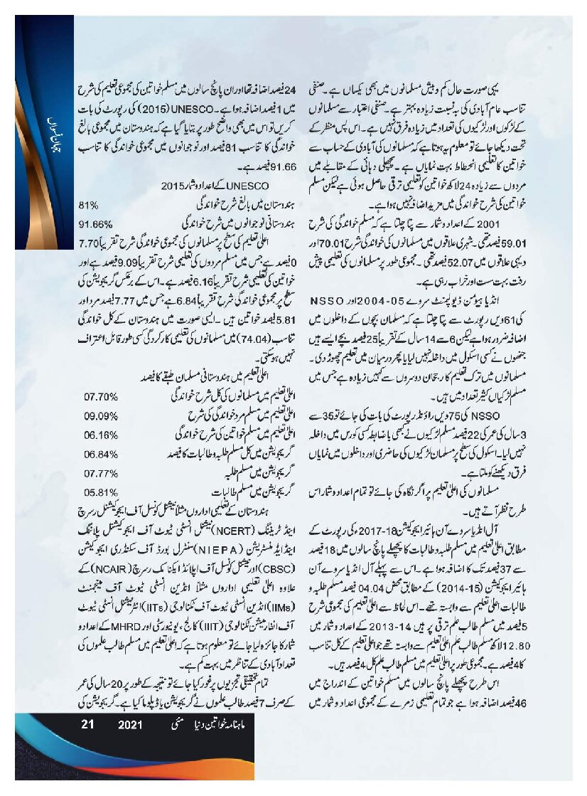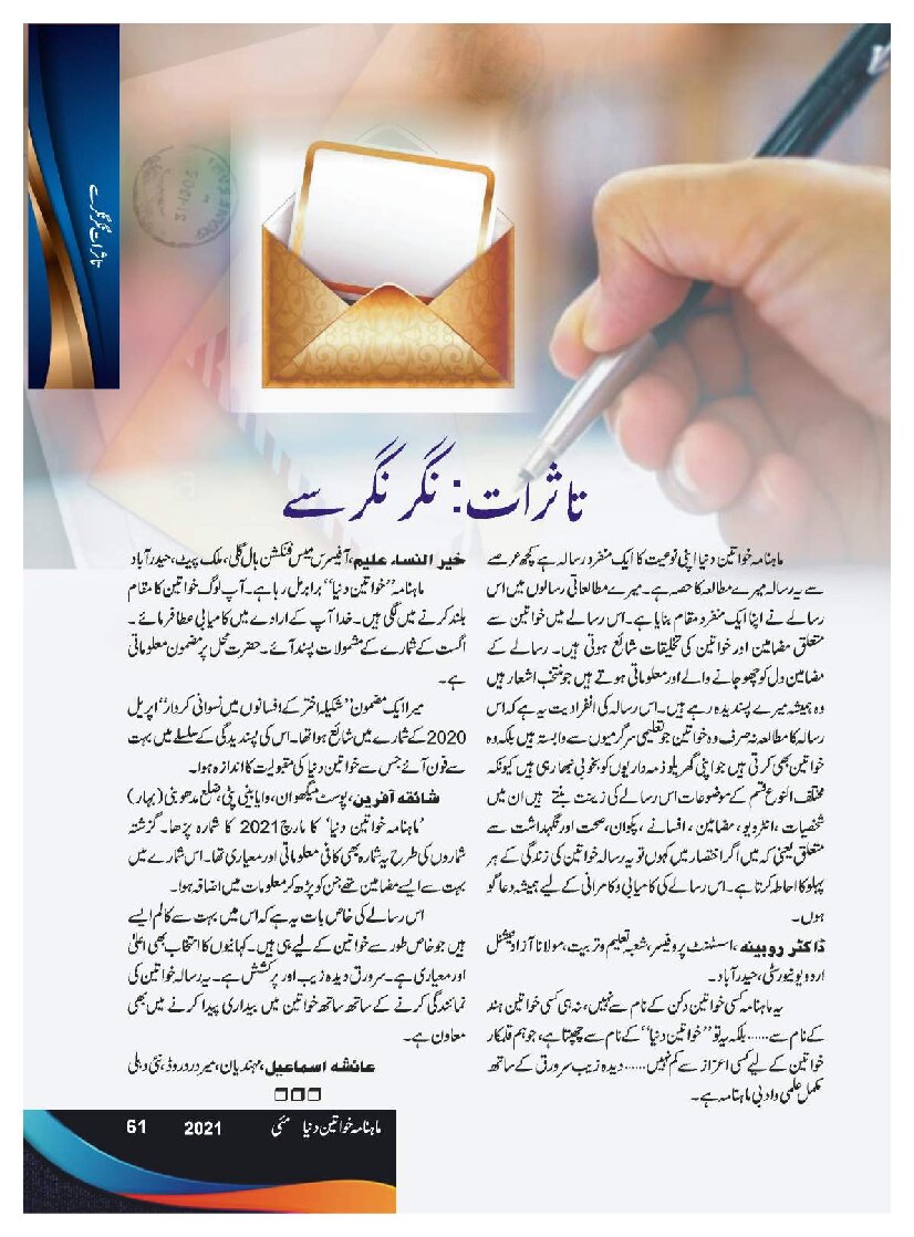 Mahnama Khawateen Duniya May 2021