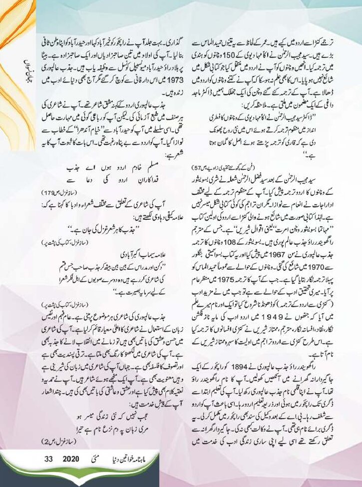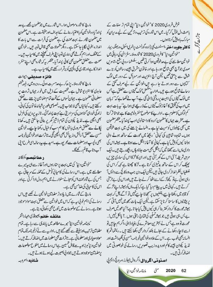 Mahnama Khawateen ki Duniya May 2020