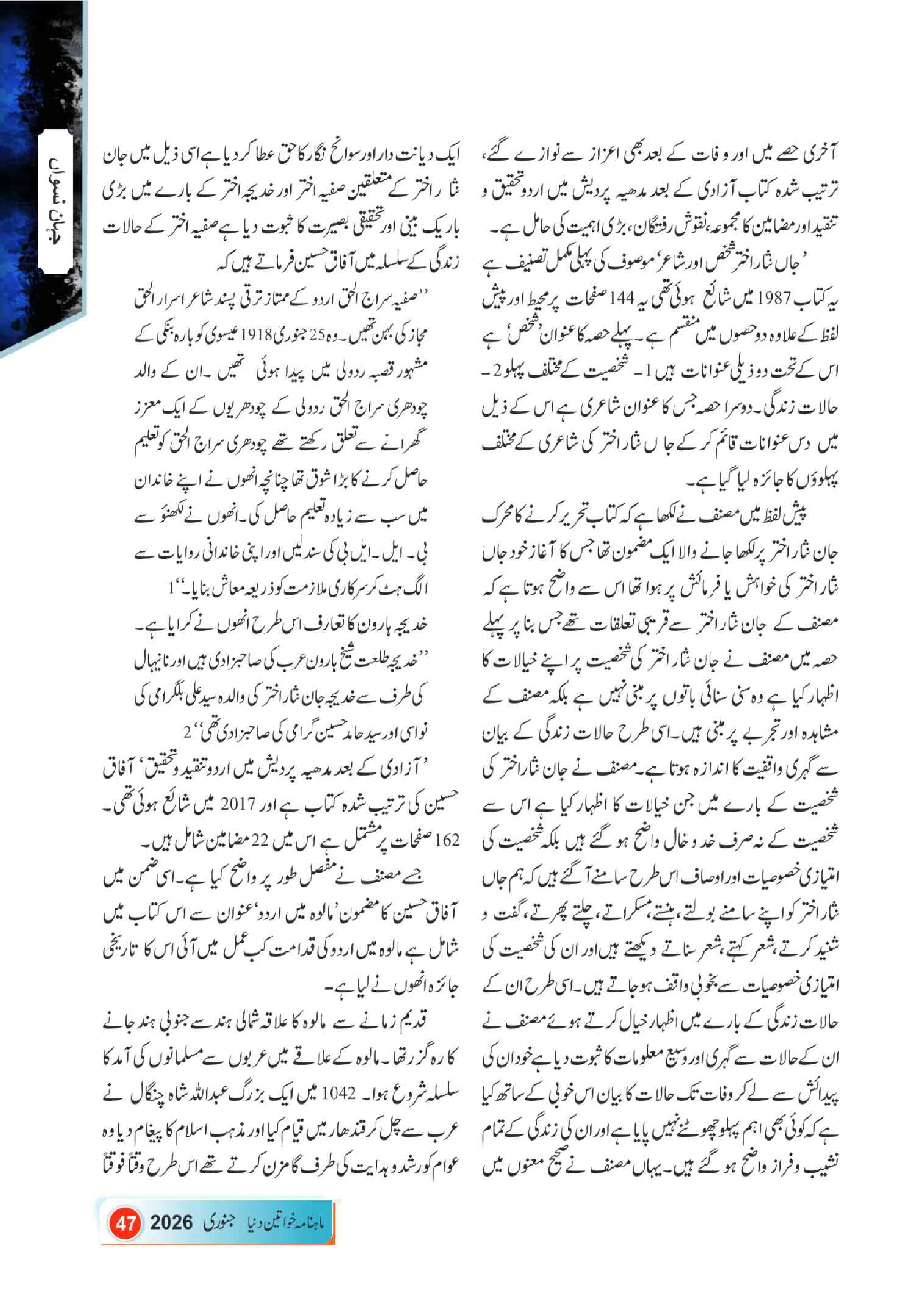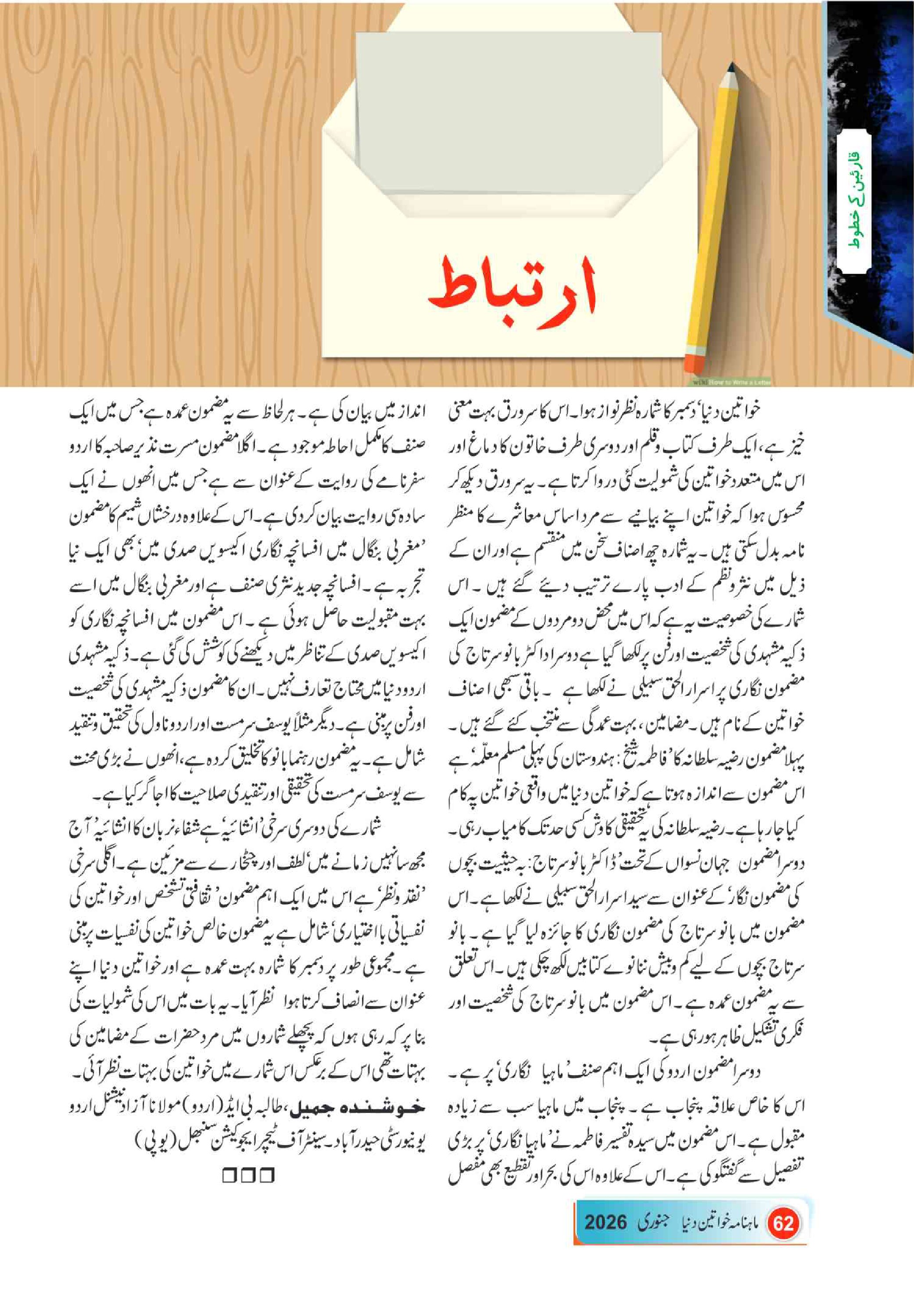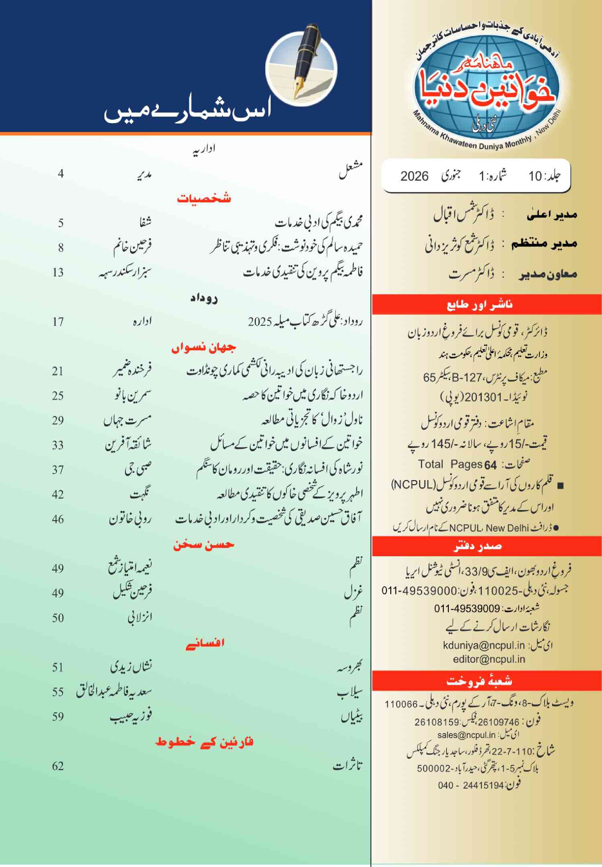 Mahnama Khawateen Duniya January- 2026