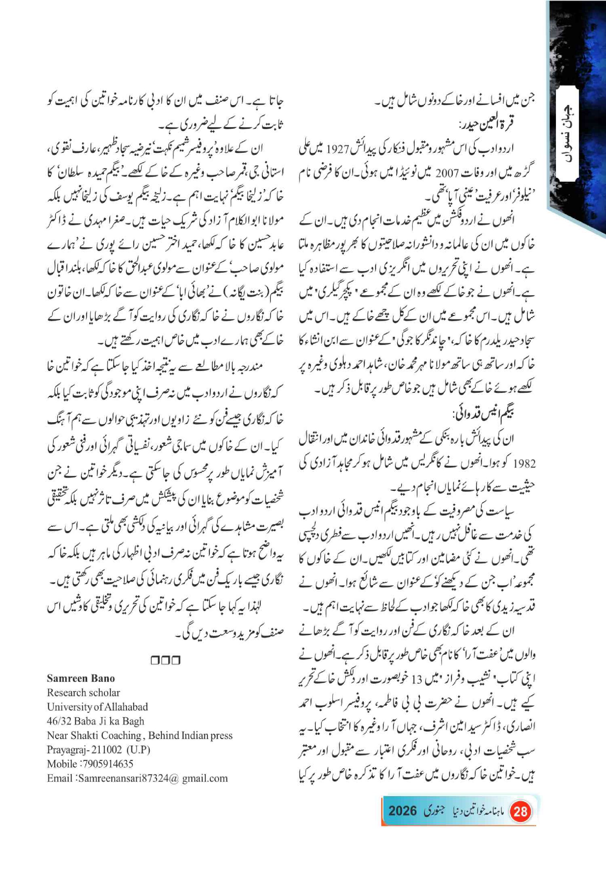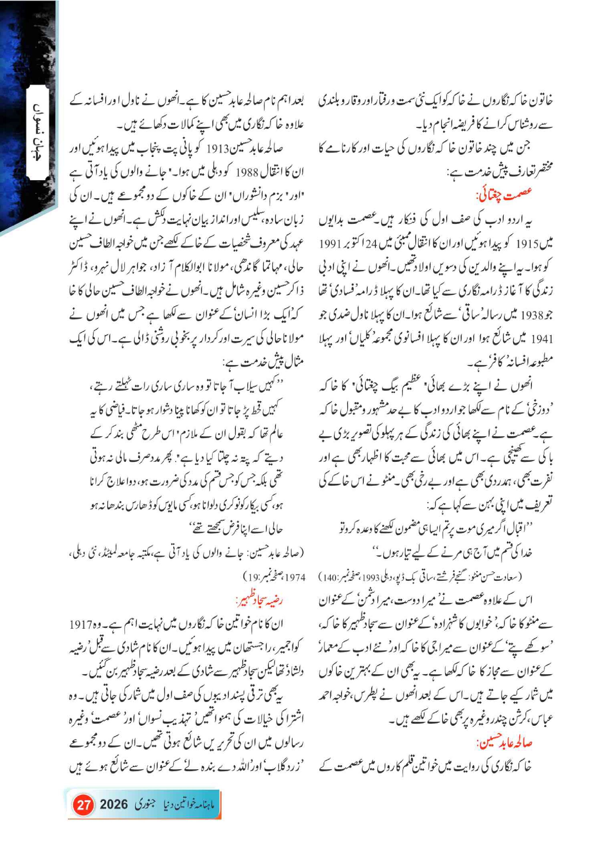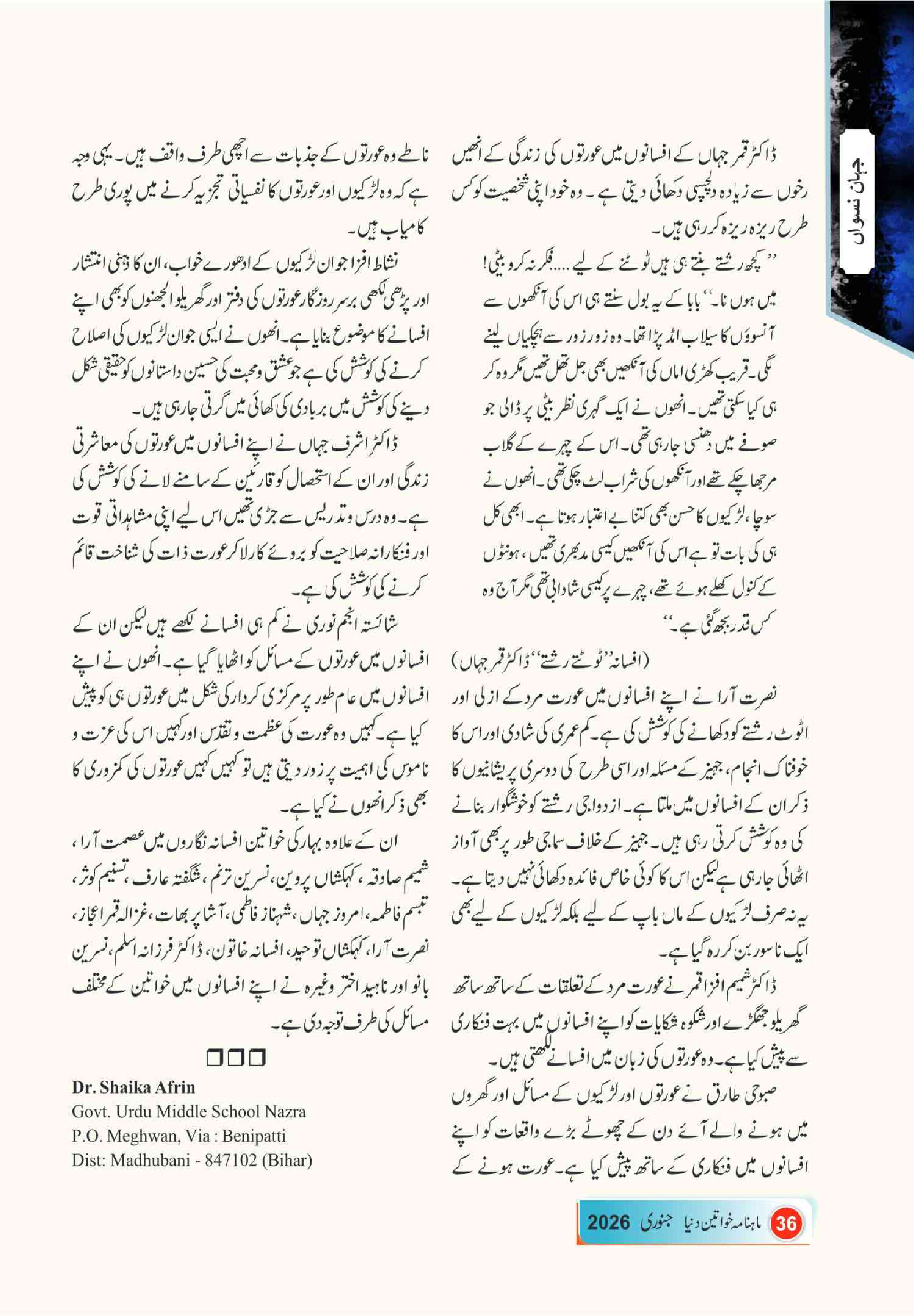 Mahnama Khawateen Duniya January- 2026