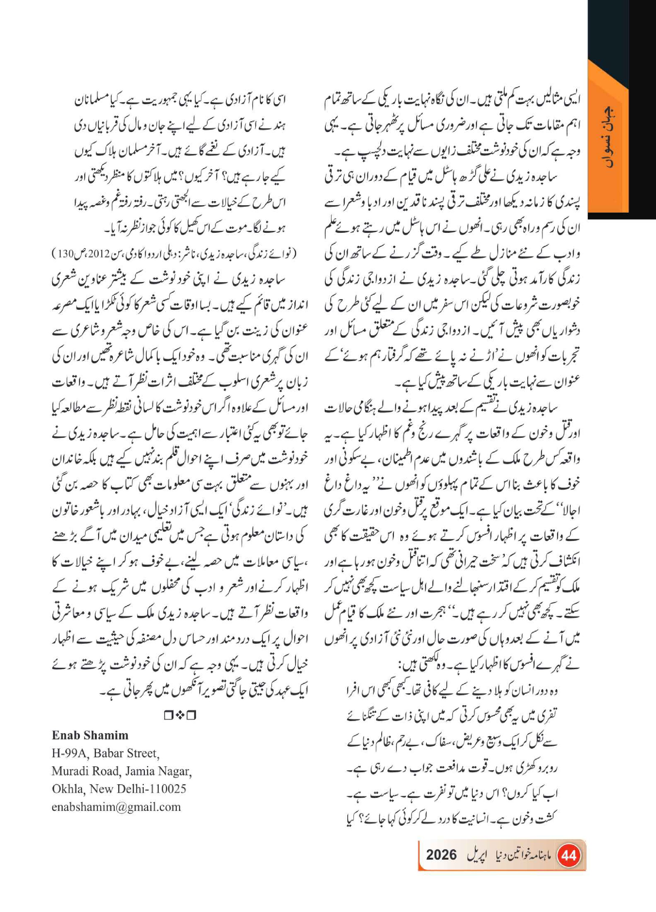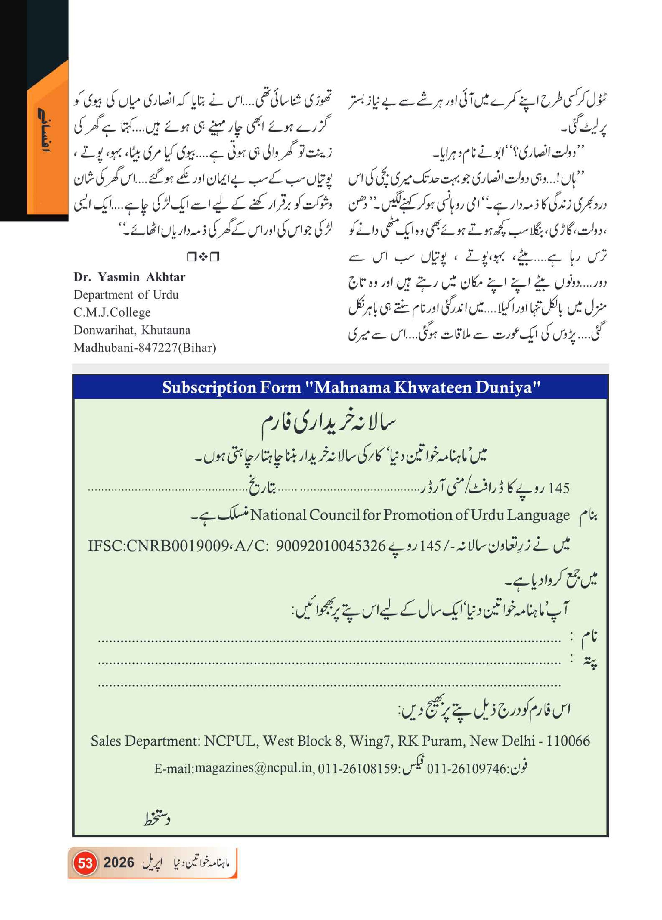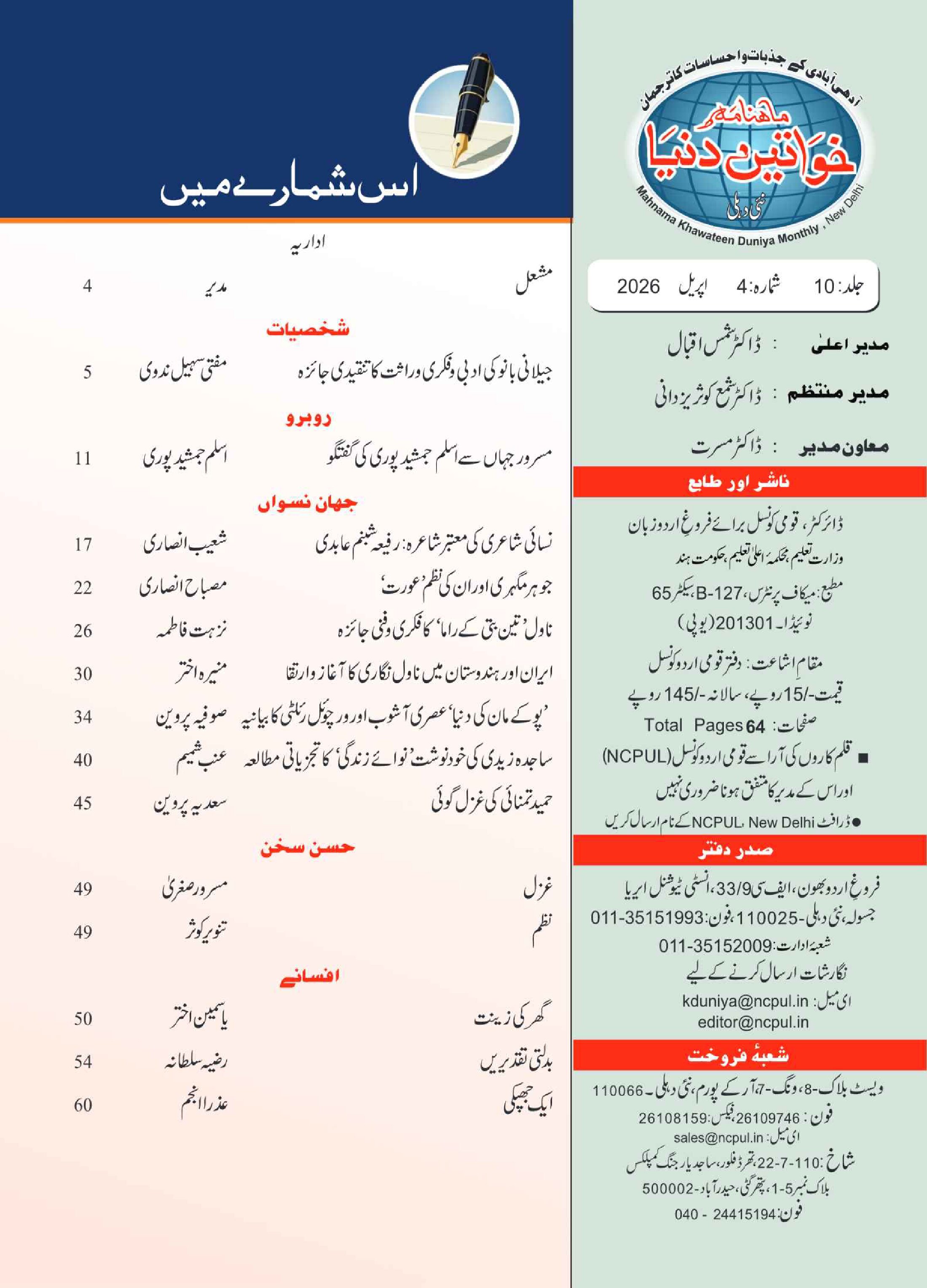 Mahnama Khawateen Duniya April- 2026